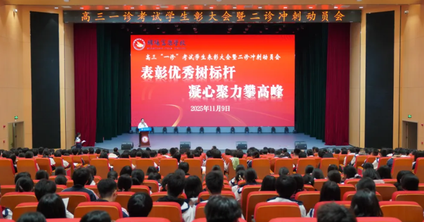 綿陽新聞網(wǎng)訊 為了表彰先進樹立典范,激揚斗志砥礪前行,11月9日,綿陽富樂學(xué)校高中部在演藝中心多功能廳舉行了以“表彰優(yōu)秀樹標(biāo)桿·凝心聚力攀高峰”為主題的2025年秋高2023級一診表彰大會暨二診沖刺動員會。高中部行政、全體高三班主任與高三學(xué)子齊聚會場,共赴這場榮譽與奮進的青春之約。