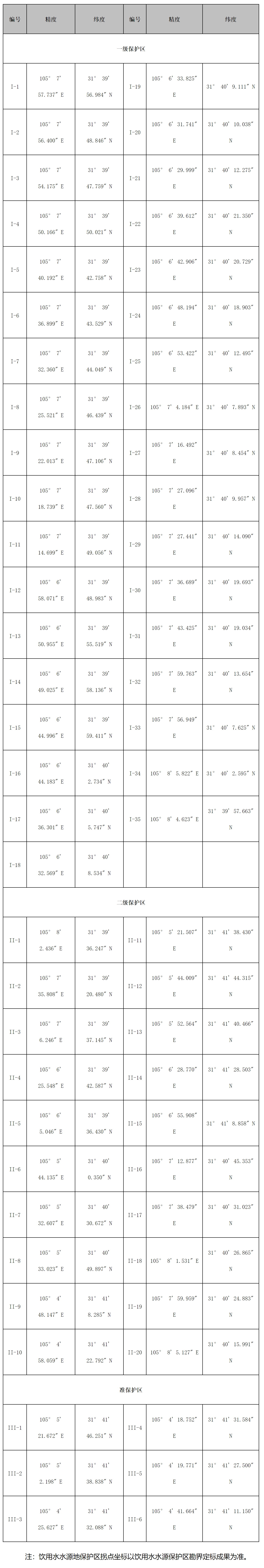 飲用水水源地保護(hù)區(qū)拐點(diǎn)坐標(biāo)