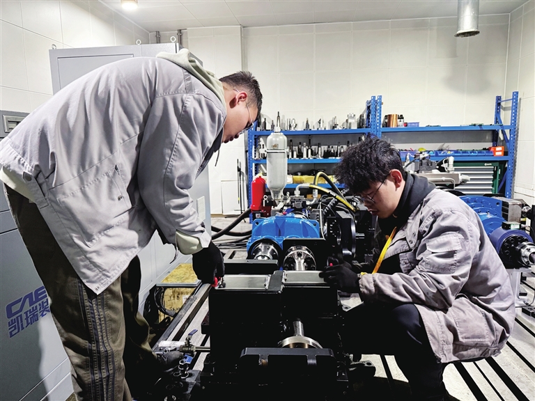 在富臨精工扭矩沖擊實驗室內(nèi),技術(shù)人員正在做實驗準(zhǔn)備。