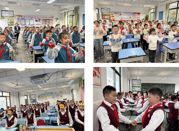 活動現(xiàn)場,三年級的小君子們身著整齊服裝,精神抖擻地列隊登臺,身姿挺拔間盡顯富樂學(xué)子的禮儀風(fēng)范。隨著旋律響起,《I can do anything》的歌聲鏗鏘有力,“I can do anything today”的重復(fù)吟唱,傳遞出了少年敢于嘗試、勇于挑戰(zhàn)的自信。孩子們跟著經(jīng)典曲目《Do the hockey pockey》擺動手腳、轉(zhuǎn)動身體,整齊劃一的動作中藏著協(xié)作的默契,俏皮可愛的表情里滿是樂學(xué)的童趣,完美詮釋了君子“和樂共進(jìn)、樂享成長”的精神內(nèi)核。舞臺上,孩子們在歌聲中感受英語韻律之美,在互動中體驗學(xué)習(xí)樂趣,真正將學(xué)校君子發(fā)展理念中“想說、敢說、能說、樂說”的語言培養(yǎng)目標(biāo),轉(zhuǎn)化為生動的實踐圖景。