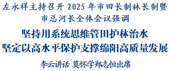 綿陽(yáng)新聞網(wǎng)訊 11月20日,2025年市田長(zhǎng)制林長(zhǎng)制暨市總河長(zhǎng)全體會(huì)議召開(kāi),省委常委、市委書(shū)記左永祥主持會(huì)議并講話。他強(qiáng)調(diào),要深入學(xué)習(xí)貫徹習(xí)近平生態(tài)文明思想和習(xí)近平總書(shū)記對(duì)四川工作系列重要指示精神,全面落實(shí)黨中央、國(guó)務(wù)院和省委、省政府決策部署,堅(jiān)持用系統(tǒng)思維管田、護(hù)林、治水,推動(dòng)田長(zhǎng)制、林長(zhǎng)制、河湖長(zhǎng)制走深走實(shí),堅(jiān)定以高水平保護(hù)支撐綿陽(yáng)高質(zhì)量發(fā)展。