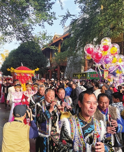 游客沉浸式體驗(yàn)羌族傳統(tǒng)婚俗。