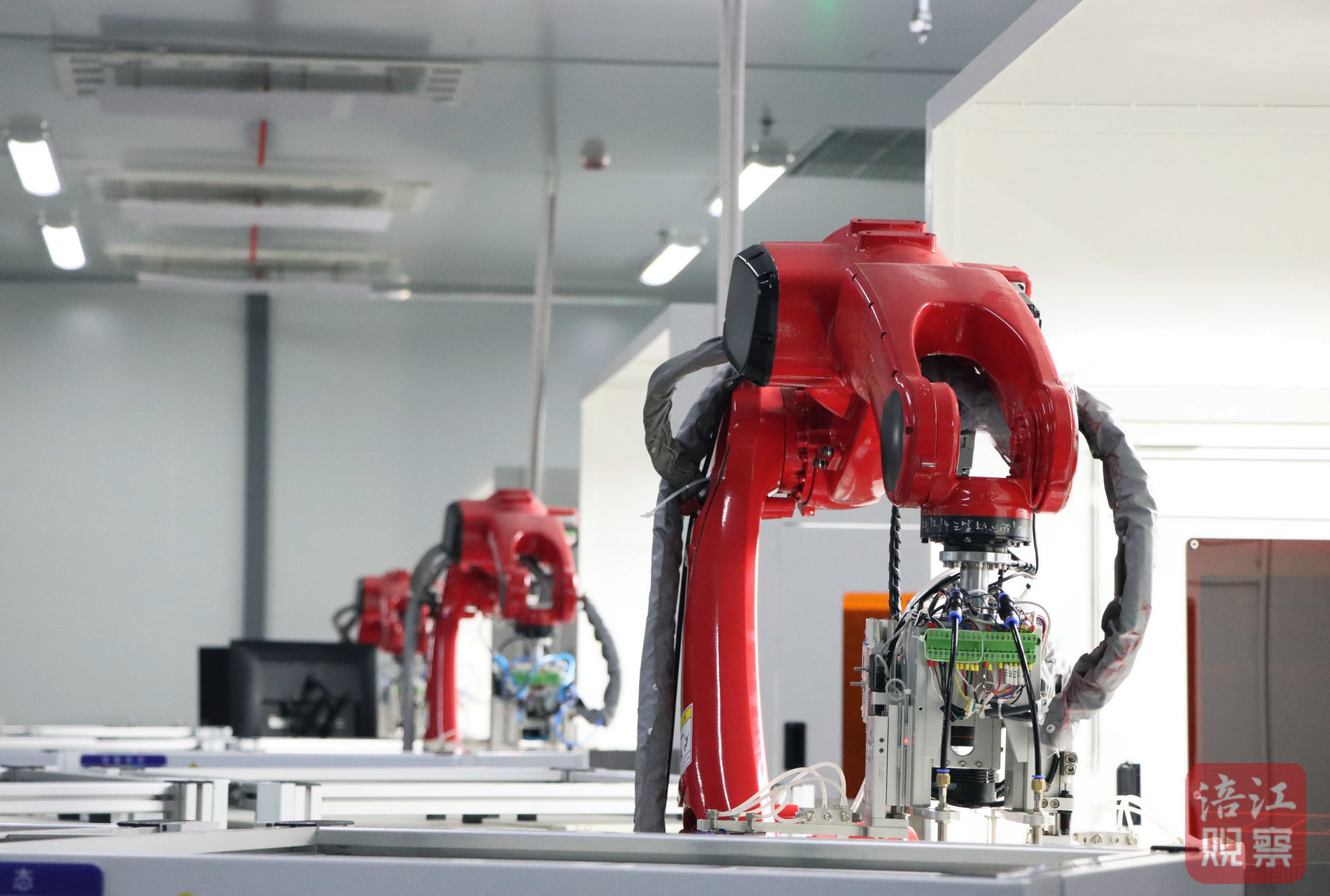 在長虹新網(wǎng)科技的智能產(chǎn)品生產(chǎn)線上,全部由自動化機(jī)械手完成Wi-Fi工序的自動抓取、自動校準(zhǔn),每1至2分鐘就可以完成一個主板的測試。