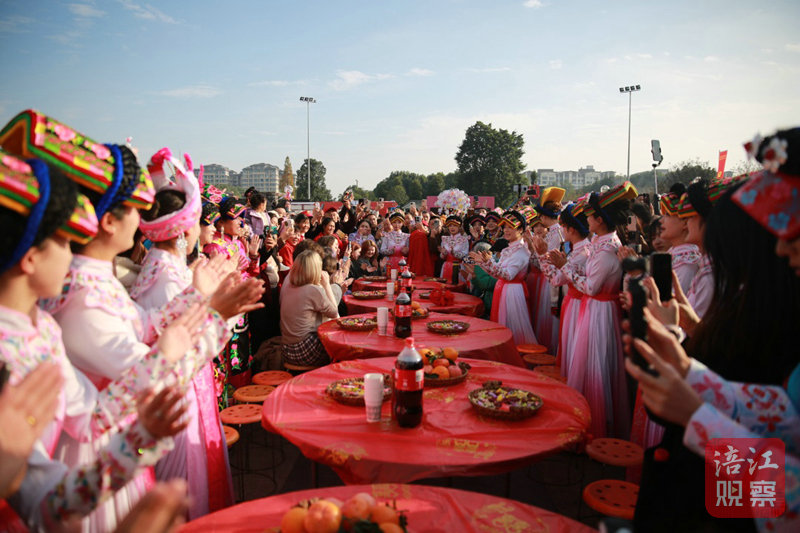 隨著羌繡省級代表性傳承人陳云珍等火把手點燃火把,木柴在篝火中噼啪作響,沙朗篝火聯(lián)歡活動正式開始。兩條80米長的巨型羌紅在人群中逶迤蜿蜒,游客在篝火的映照下,與當(dāng)?shù)厝罕娛掷?,圍著篝火唱起了歌、跳起了舞,盡情釋放著內(nèi)心的歡樂與熱情,一幅民族團結(jié)進步的生動畫卷徐徐展開。