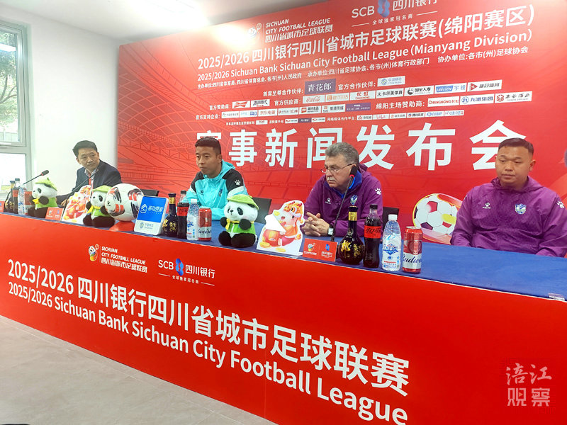 11月22日,2025/2026四川銀行四川省城市足球聯(lián)賽(綿陽賽區(qū))收官之戰(zhàn)賽前新聞發(fā)布會在三臺縣體育場新聞發(fā)布廳舉行。綿陽九洲長虹隊、阿壩州雪山雄鷹隊的主教練及隊員出席并接受媒體采訪,雙方圍繞賽前準(zhǔn)備情況以及球員狀態(tài)進(jìn)行了分享。