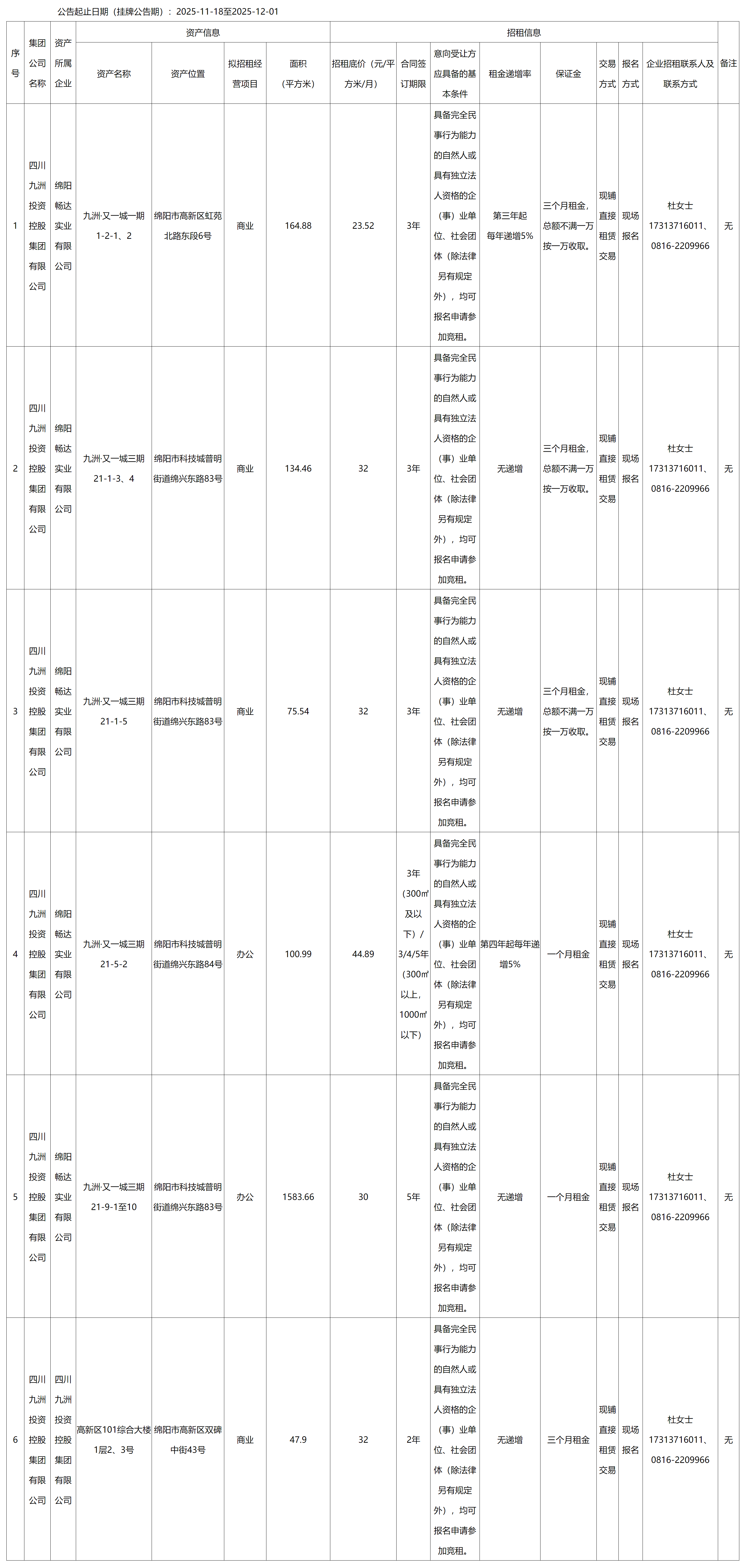 四川九洲千城商業(yè)管理有限公司高新項(xiàng)目部九洲·又一城項(xiàng)目、608家屬區(qū)101綜合大樓商鋪出租公告