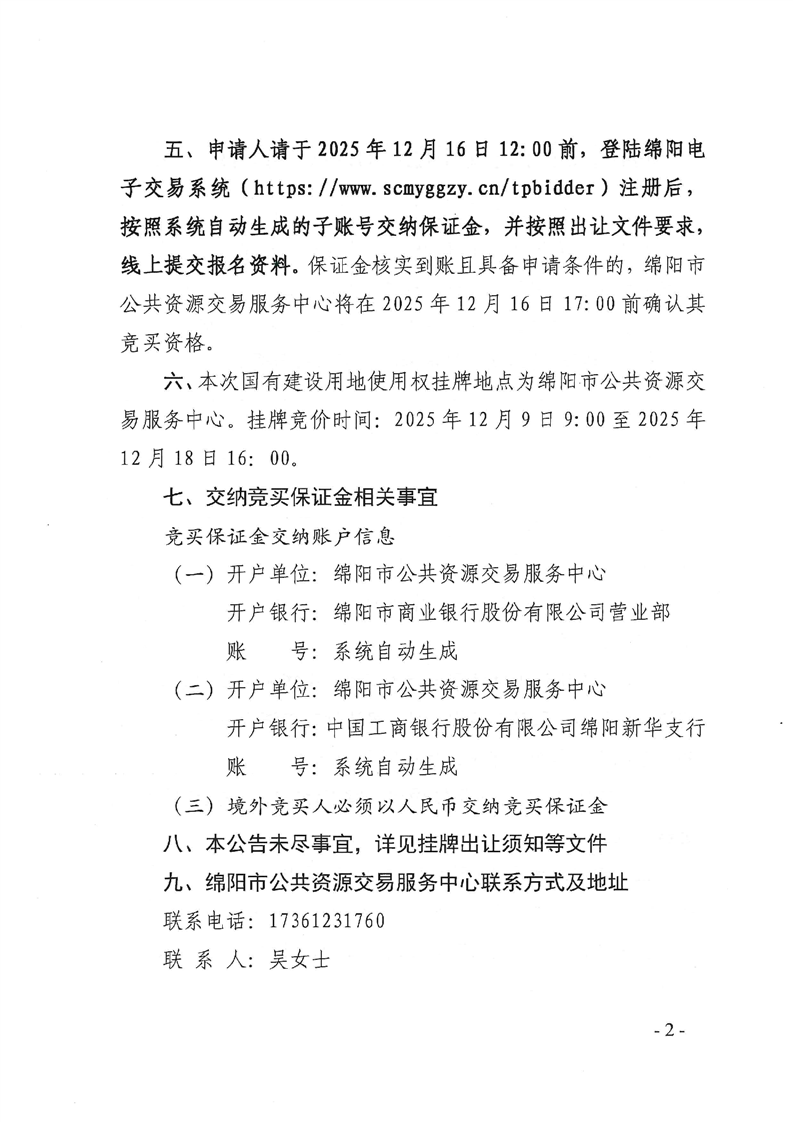 綿陽(yáng)市國(guó)有建設(shè)用地使用權(quán)掛牌出讓公告(綿新區(qū)土公告〔2025〕10號(hào))