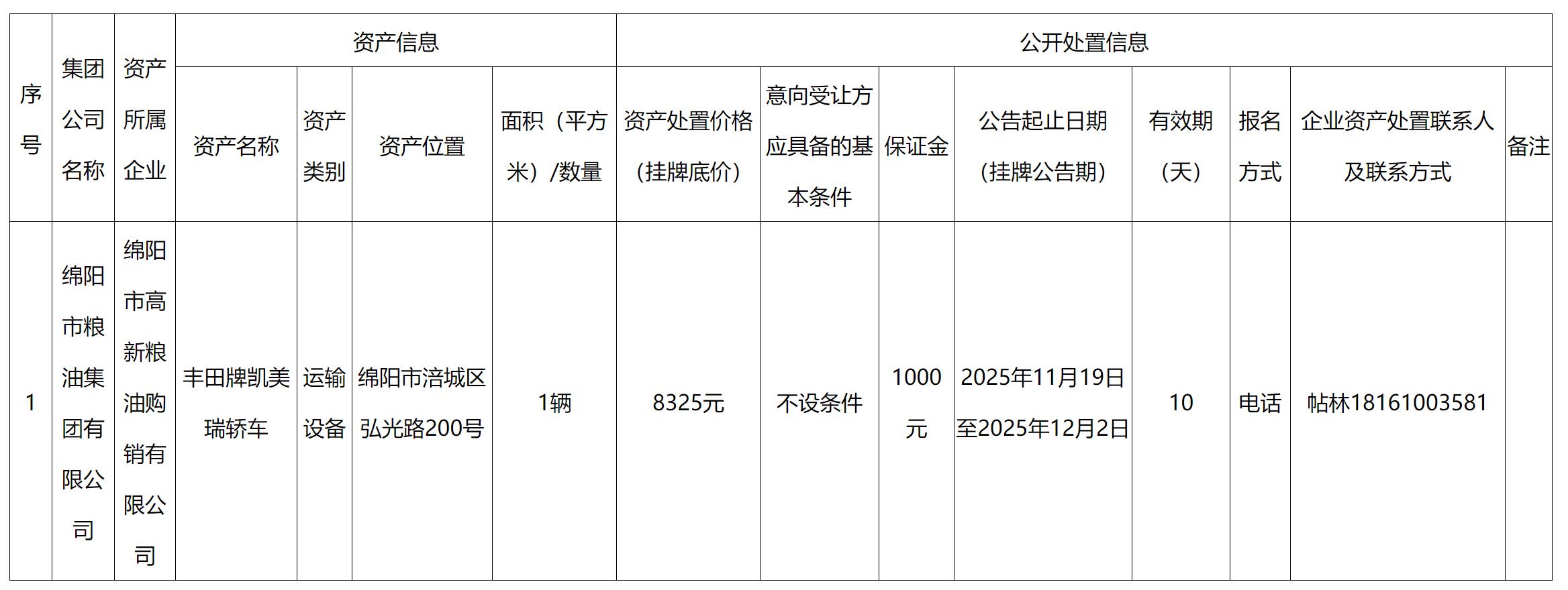 綿陽市高新糧油購銷有限公司車輛處置公告