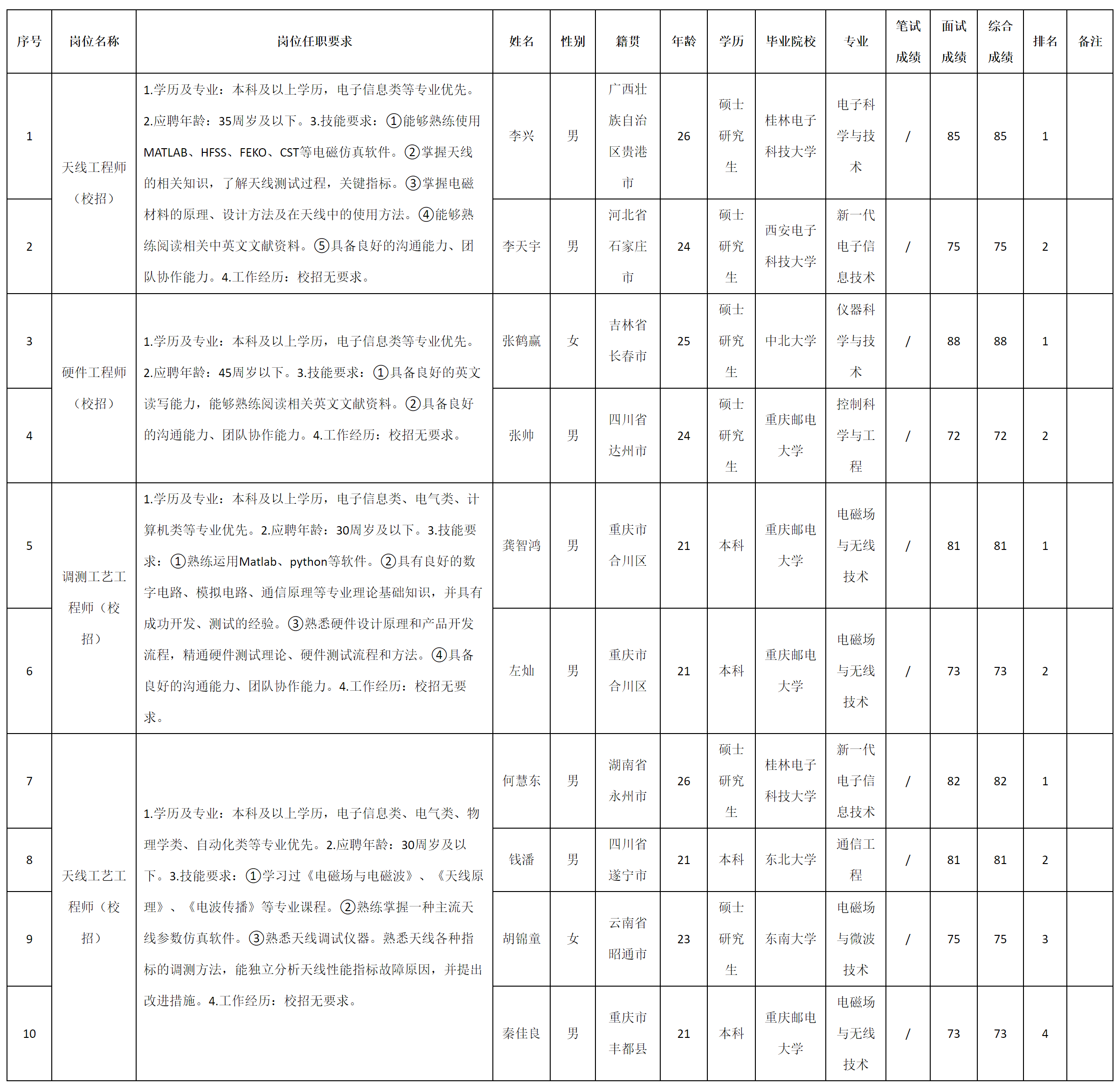 根據(jù)四川九洲電器集團(tuán)有限責(zé)任公司發(fā)布的招聘公告及招聘相關(guān)規(guī)定,現(xiàn)將測試成績予以公示。
