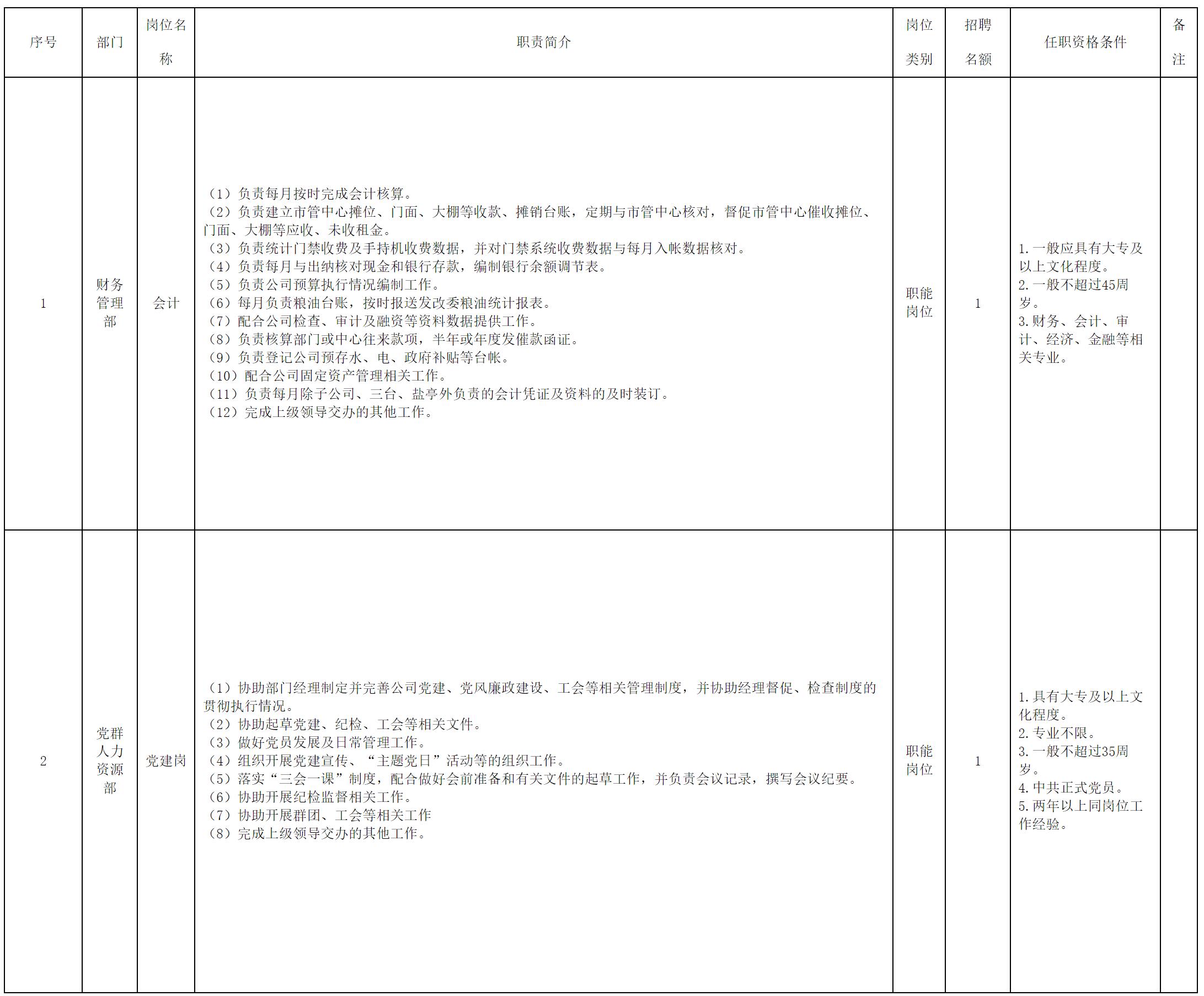 綿陽(yáng)市高水農(nóng)副產(chǎn)品批發(fā)有限公司,成立于1993年,注冊(cè)資本1881萬(wàn)元,是綿陽(yáng)交通發(fā)展集團(tuán)有限責(zé)任公司下屬國(guó)有控股企業(yè)。公司主要從事農(nóng)產(chǎn)品批發(fā)交易、加工、冷鏈、儲(chǔ)存、配送和互聯(lián)網(wǎng)信息服務(wù)等。因公司經(jīng)營(yíng)發(fā)展需要,經(jīng)研究決定面向社會(huì)公開(kāi)招聘,現(xiàn)將有關(guān)事宜公告如下: