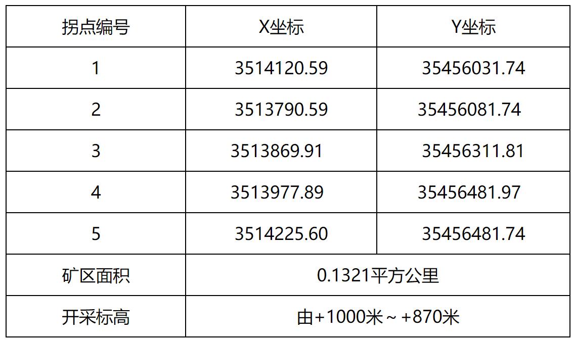 開采范圍:0.1321平方公里,拐點坐標如下(2000國家大地坐標):