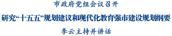 綿陽新聞網(wǎng)訊 11月24日,市政府黨組會議召開,研究“十五五”規(guī)劃建議和現(xiàn)代化教育強(qiáng)市建設(shè)規(guī)劃綱要。市委副書記、市政府黨組書記、市長李云主持會議并講話。
