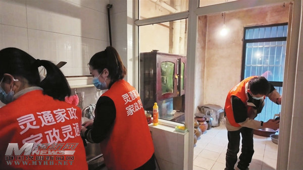 工作人員在老人家中幫忙做家務(wù)。 記者 陳元松 攝