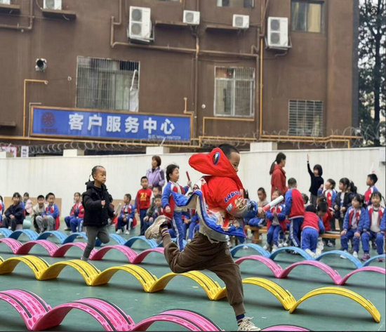 運動會賽場化身“懷舊游樂場”,分齡設計的游戲項目讓不同年齡段的幼兒盡享運動樂趣,傳統(tǒng)游戲與現代童趣碰