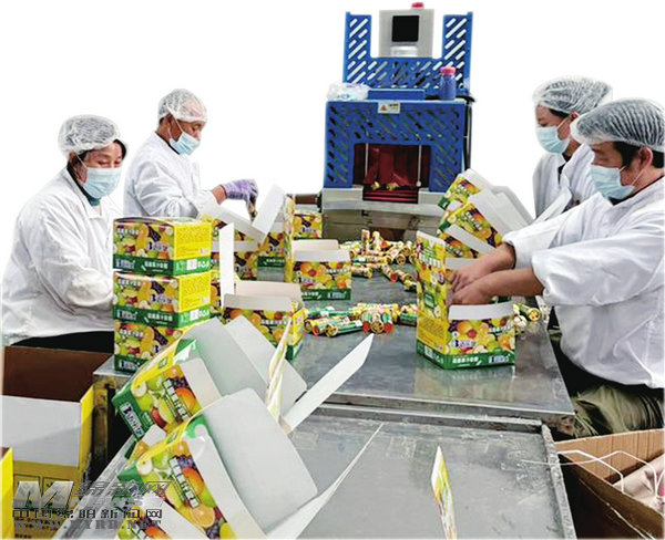 在四川領(lǐng)旗食品有限公司生產(chǎn)車間,工人們正在進(jìn)行檢驗和裝箱。 記者 李春梅 攝