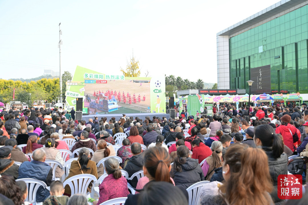 11月23日,綿陽隊(duì)與阿壩隊(duì)比賽場(chǎng)外的“多彩綿陽 熱烈滾燙”川超專場(chǎng)活動(dòng)人氣火爆。