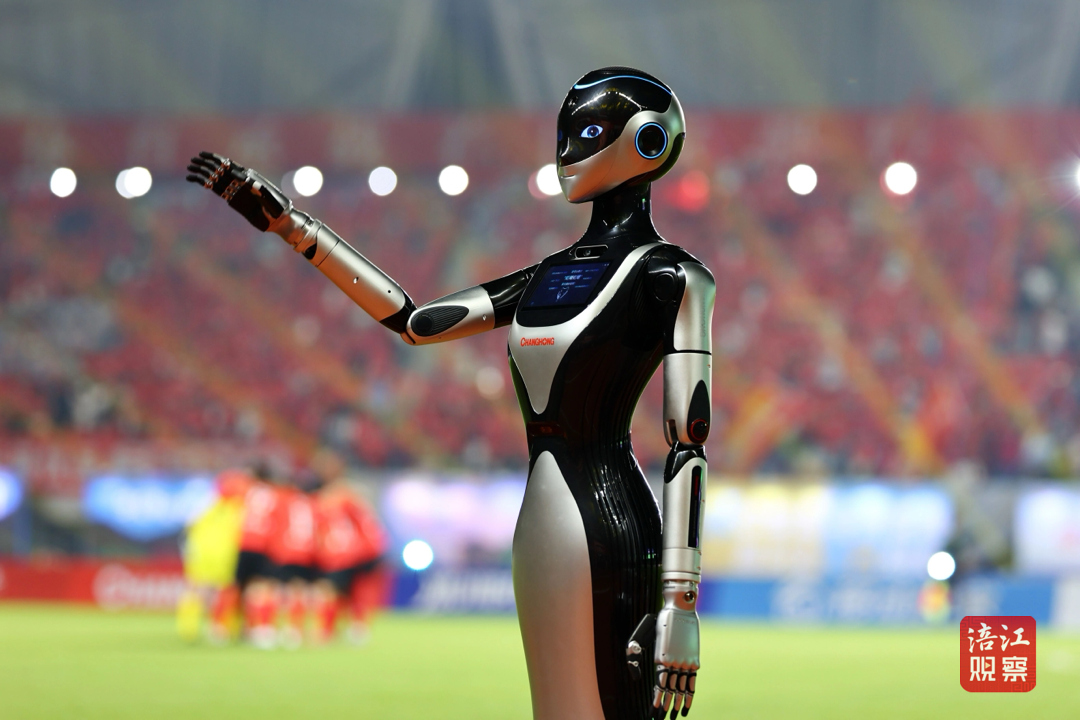 川超首個(gè)主場(chǎng)開球儀式,當(dāng)無人駕駛公交車穩(wěn)穩(wěn)駛來,長(zhǎng)虹機(jī)器人靈活互動(dòng),“機(jī)器狼”邁著矯健的步伐驚艷亮相——這些本土科研成果實(shí)現(xiàn)“從實(shí)驗(yàn)室到賽場(chǎng)”的場(chǎng)景轉(zhuǎn)化,讓觀眾近距離感受科技的魅力;