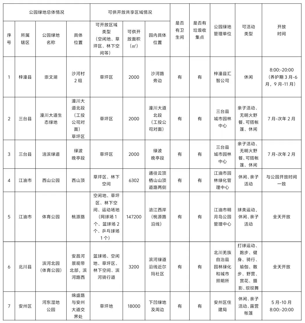 綿陽(yáng)市第三期綠地開(kāi)放共享清單
