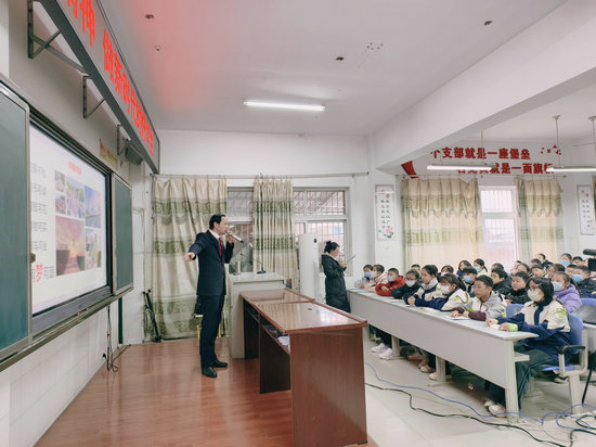 綿陽(yáng)新聞網(wǎng)訊 為了深入推進(jìn)“強(qiáng)國(guó)復(fù)興有我”主題思政教育,引導(dǎo)青少年樹(shù)立正確的世界觀、人生觀和價(jià)值觀,2025年11月25日上午,安州區(qū)第一初級(jí)中學(xué)特邀綿陽(yáng)市抗震救災(zāi)精神宣講團(tuán)成員景富國(guó)老師來(lái)校,為全體師生開(kāi)展了以“弘揚(yáng)偉大抗震救災(zāi)精神,做新時(shí)代的好學(xué)生”為主題的的演講活動(dòng)。本次活動(dòng)由黃琳琳老師主持,采用“現(xiàn)場(chǎng)+直播”相結(jié)合的方式進(jìn)行,三個(gè)班級(jí)的學(xué)生在會(huì)議室現(xiàn)場(chǎng)聆聽(tīng),其余班級(jí)在教室內(nèi)同步收看直播。