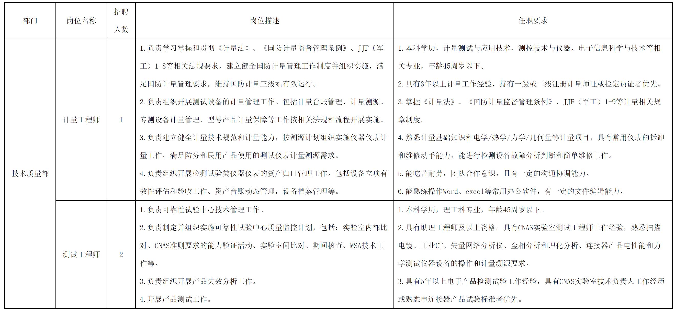 現(xiàn)因公司經(jīng)營發(fā)展需要,現(xiàn)面向長虹控股集團(tuán)內(nèi)、外部誠聘計(jì)量工程師等崗位人員,具體崗位招聘信息公告如下: