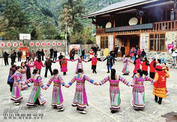 木皮藏族鄉(xiāng)關(guān)壩村村民跳起歡樂的圓圓舞。 胡宇 攝