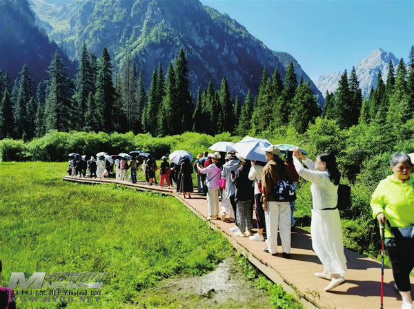 訪客在王朗大熊貓?zhí)矫貭I地參觀游覽。 胡宇 攝