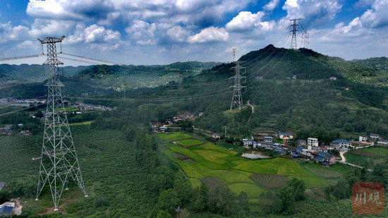 川渝1000千伏特高壓交流工程輸電線路。李濤 攝