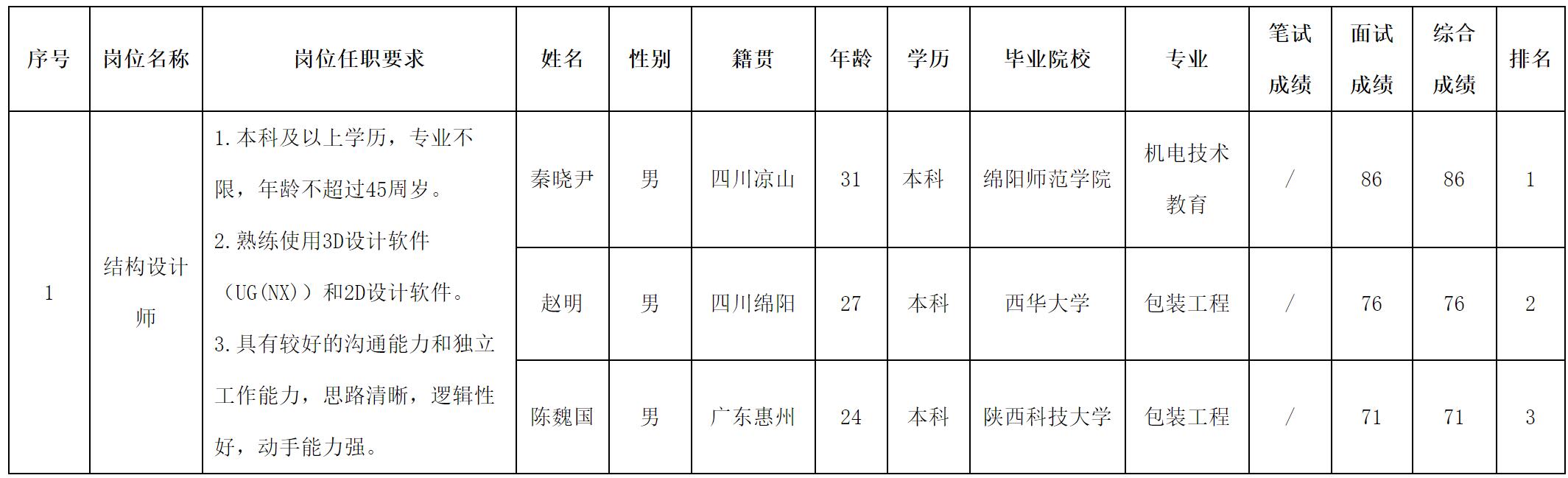 根據(jù)四川長虹新網(wǎng)科技公司發(fā)布的招聘公告及招聘相關(guān)規(guī)定,現(xiàn)將測試成績予以公示。