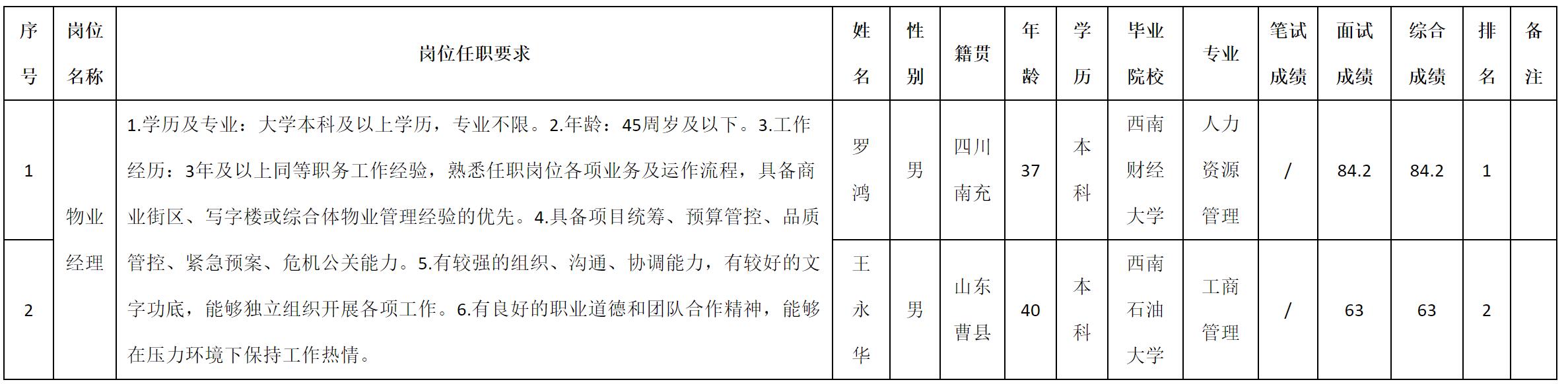 根據(jù)四川九洲千城商業(yè)管理有限公司發(fā)布的招聘公告及招聘相關(guān)規(guī)定,現(xiàn)將測試成績予以公示。