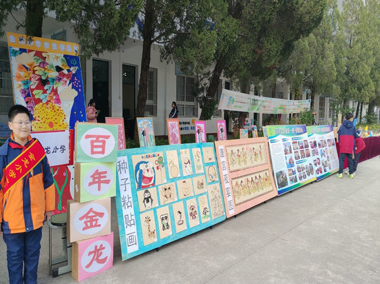 在黎雅學(xué)區(qū)課后服務(wù)成果展演的舞臺(tái)上,金龍小學(xué)學(xué)子帶來的舞蹈節(jié)目《我心中的河》,以深情的演繹流淌出對(duì)家國、對(duì)生活的真摯熱愛,成為整場演出的一大亮點(diǎn)。舞臺(tái)之外,該校精心布置的兩大主題展板,更是全方位展現(xiàn)了課后服務(wù)的豐碩成果。從百年底蘊(yùn)、書香校園、黨建引領(lǐng)、實(shí)踐賦能四個(gè)維度,系統(tǒng)呈現(xiàn)了該校課后服務(wù)的辦學(xué)根基與特色路徑,記錄了學(xué)子們?cè)谡n后時(shí)光里的成長與蛻變。其中,孩子們的手工作品,匠心獨(dú)運(yùn),巧奪天工,生動(dòng)詮釋了金龍學(xué)子的創(chuàng)造力與文化自信。