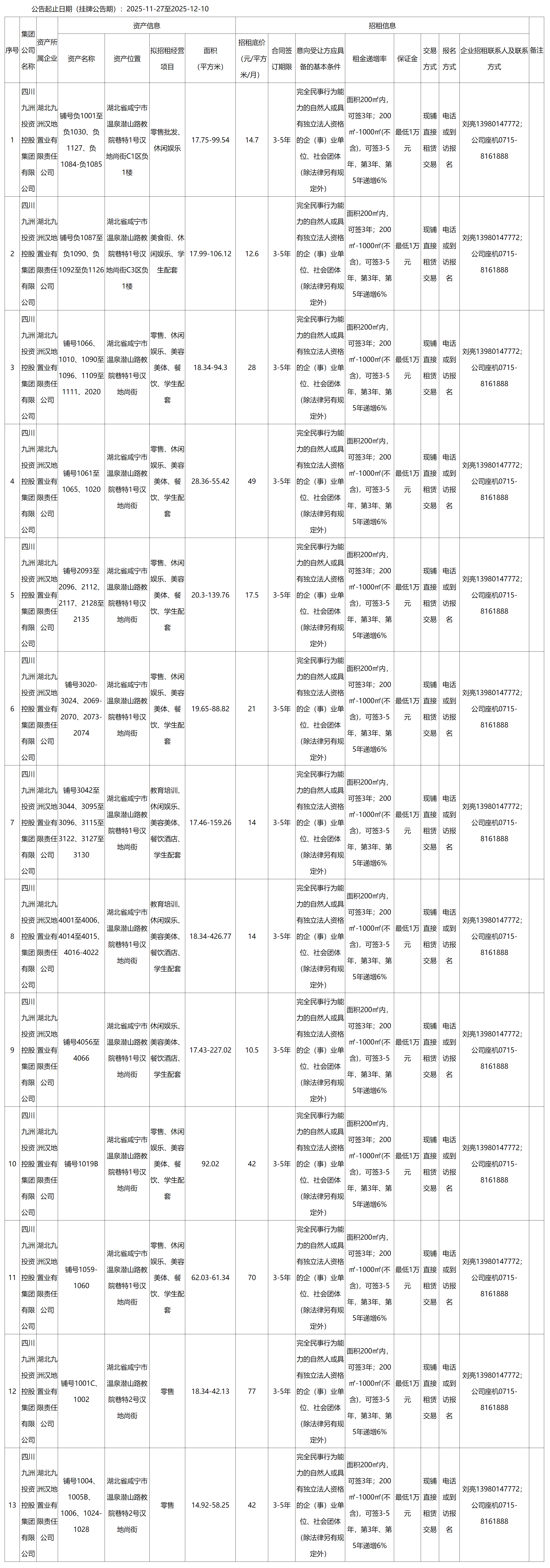 四川九洲千城商業(yè)管理有限公司湖北項(xiàng)目部漢地尚街商鋪出租公告