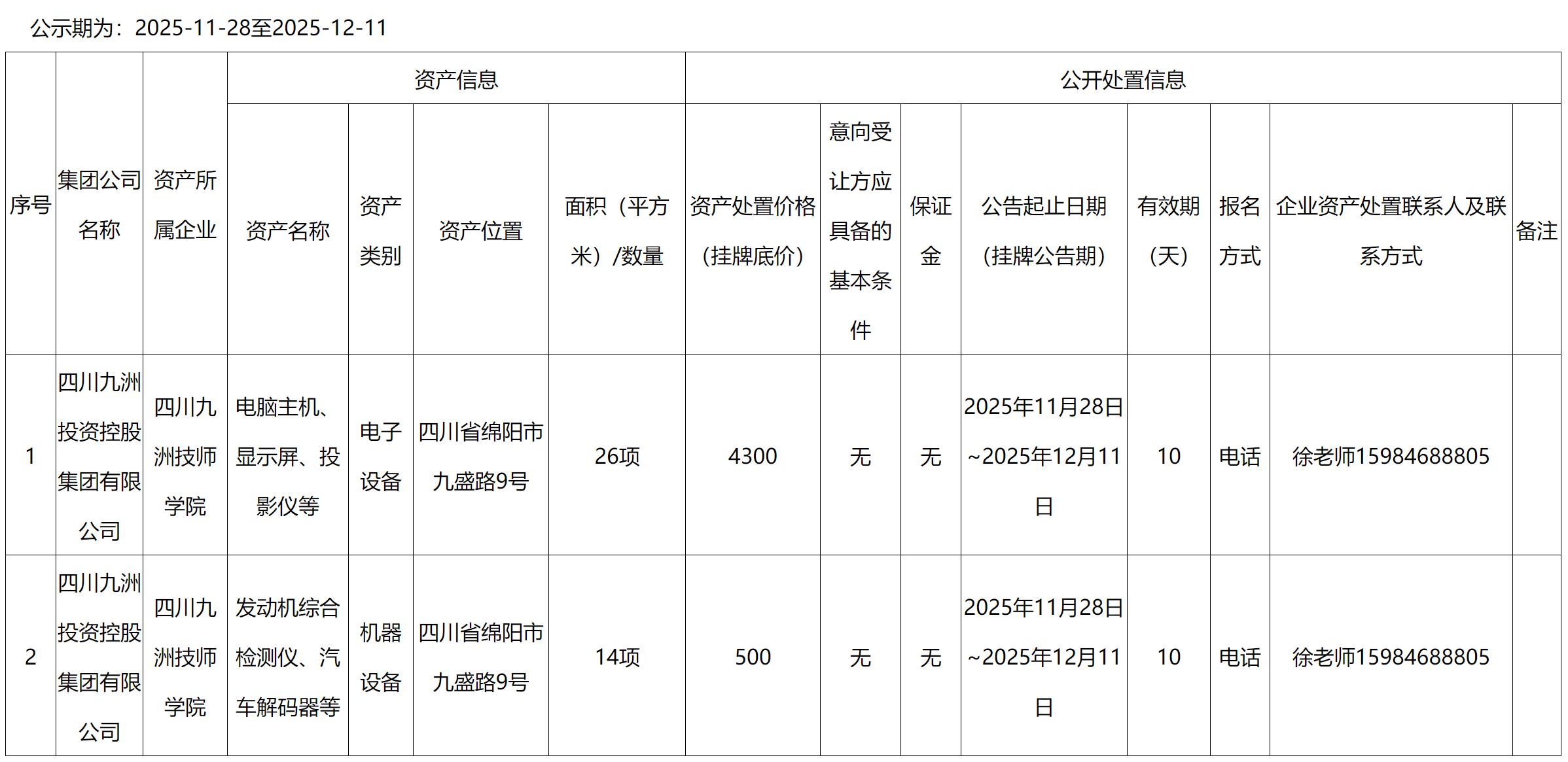 四川九洲技師學(xué)院資產(chǎn)處置公告