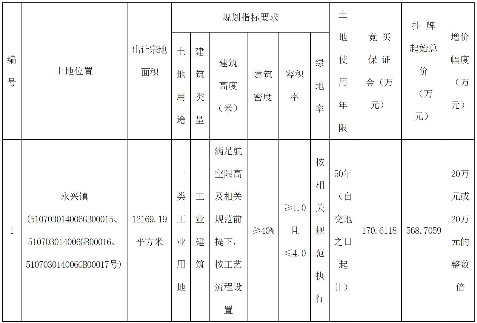 六、本次國有建設用地使用權掛牌地點為綿陽市公共資源交易服務中心。掛牌競價時間:2025年12月22日9:00至2025年12月31日16:00。