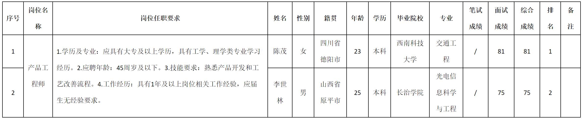 根據(jù)四川九華光子通信技術(shù)有限公司發(fā)布的招聘公告及招聘相關(guān)規(guī)定,現(xiàn)將測(cè)試成績(jī)予以公示。
