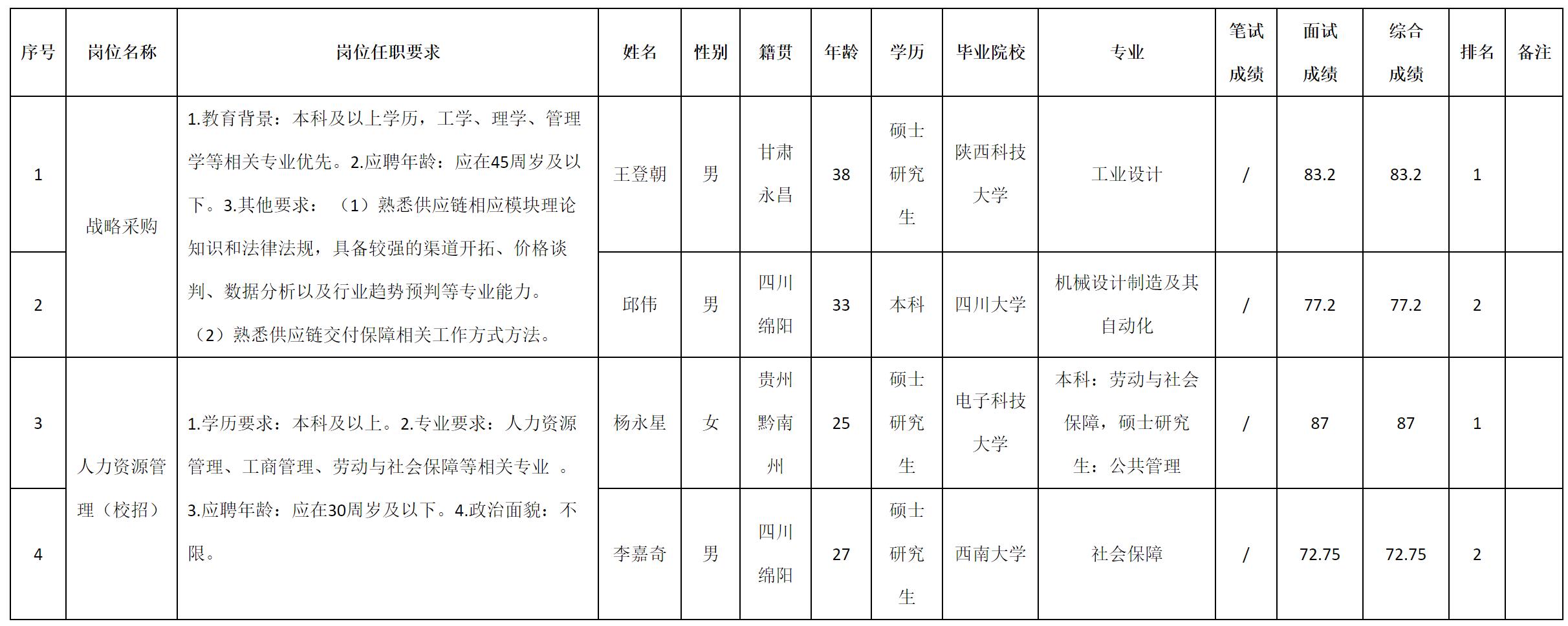 根據四川九州電子科技股份有限公司發(fā)布的招聘公告及招聘相關規(guī)定,現(xiàn)將測試成績予以公示。