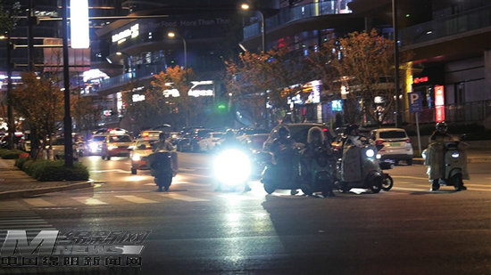 除了鄉(xiāng)間道路,城區(qū)道路上也不難發(fā)現(xiàn)加裝遠(yuǎn)光燈的電動(dòng)自行車。有的燈光亮度尚可接受,有的異常刺眼,亮度甚至超過(guò)并行的汽車大燈。