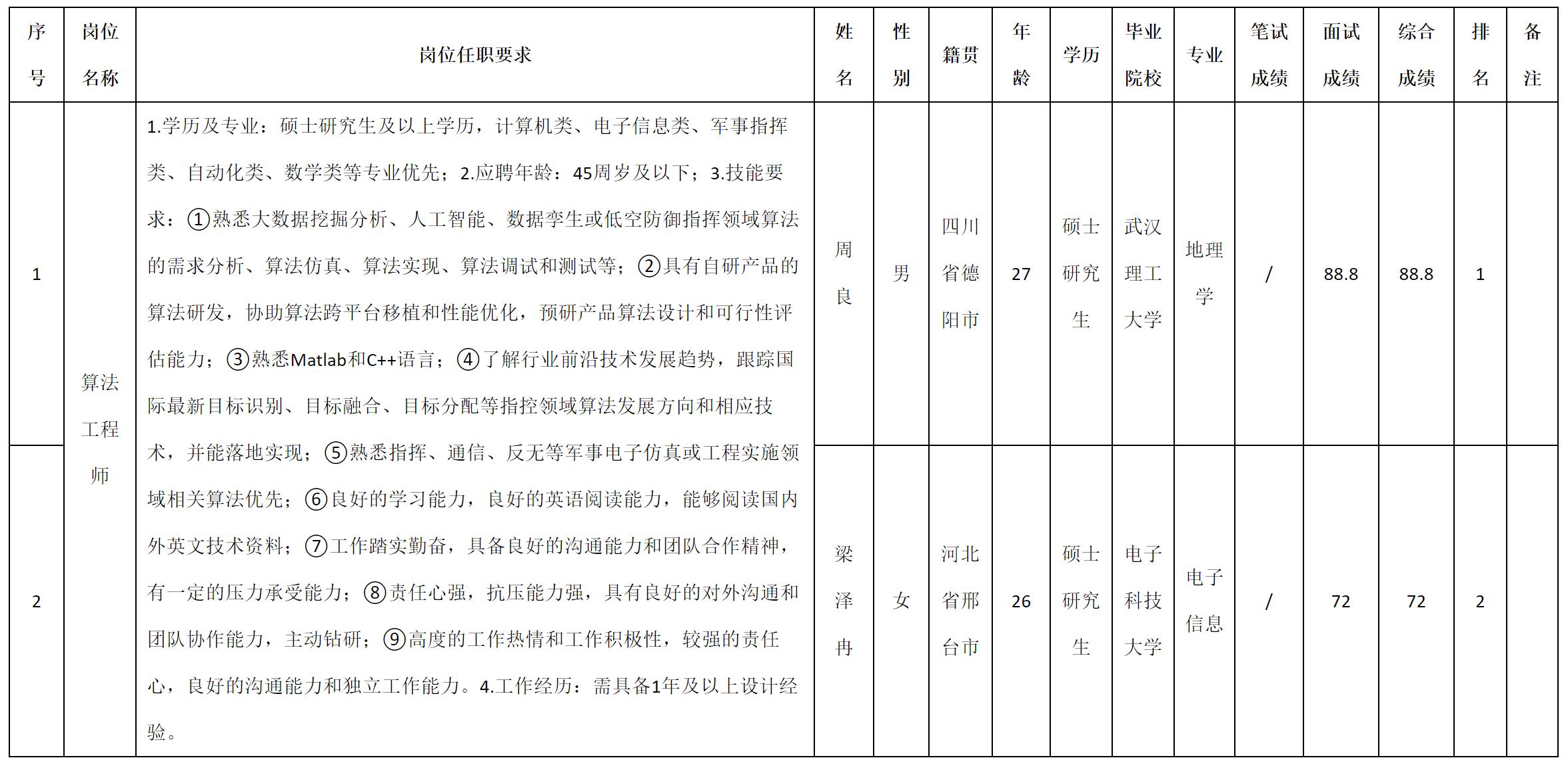 根據(jù)四川九洲電器集團有限責任公司發(fā)布的招聘公告及招聘相關(guān)規(guī)定,現(xiàn)將測試成績予以公示。