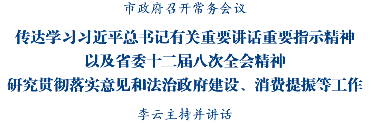 12月3日,市政府召開第123次常務(wù)會議,傳達學(xué)習(xí)習(xí)近平總書記有關(guān)重要講話重要指示精神以及省委十二屆八次全會精神,研究貫徹落實意見和法治政府建設(shè)、消費提振等工作。市委副書記、市長李云主持會議并講話。