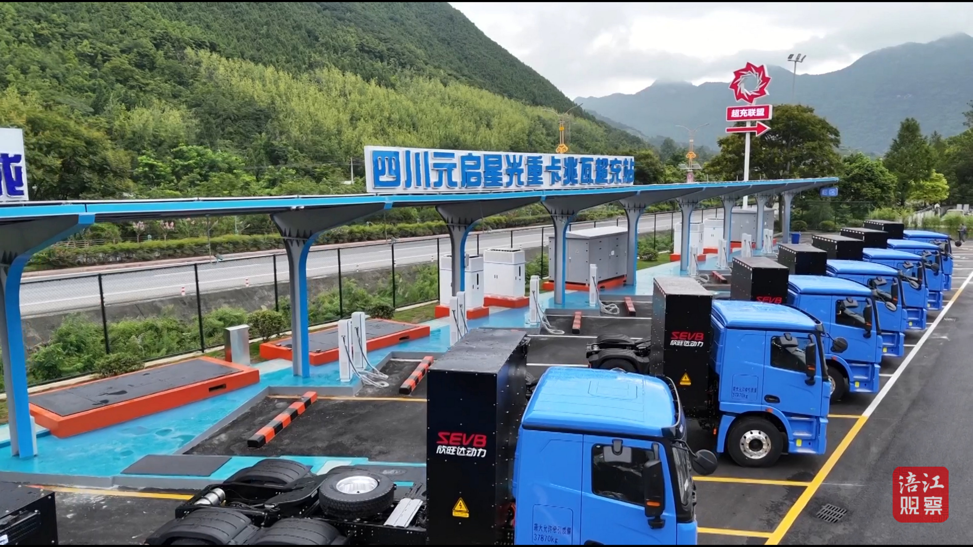 川西北地區(qū)首座專(zhuān)門(mén)服務(wù)重卡的兆瓦級(jí)超充站。視覺(jué)綿陽(yáng)資料圖