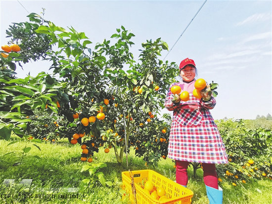 安州九合村柑橘現(xiàn)代農(nóng)業(yè)園區(qū)里,金燦燦的柑橘掛滿枝頭。視覺綿陽資料圖片