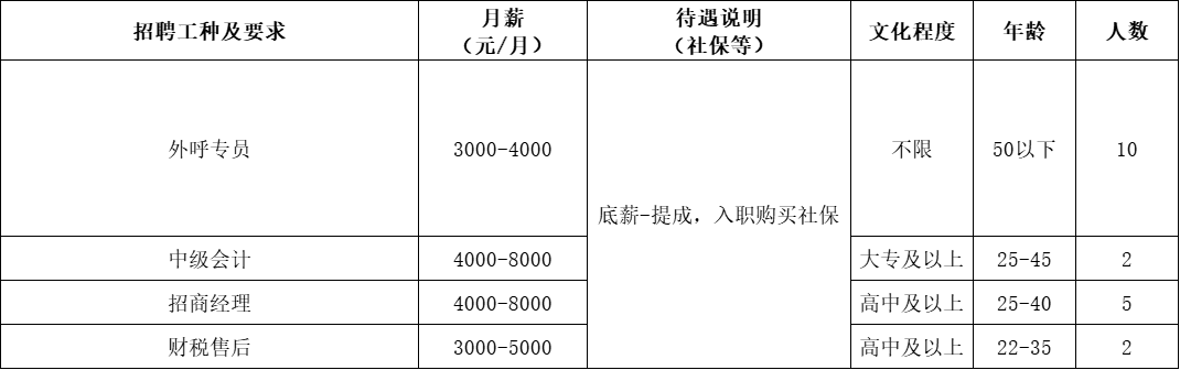 學(xué)歷:高中及以上學(xué)歷,年齡18-50歲。