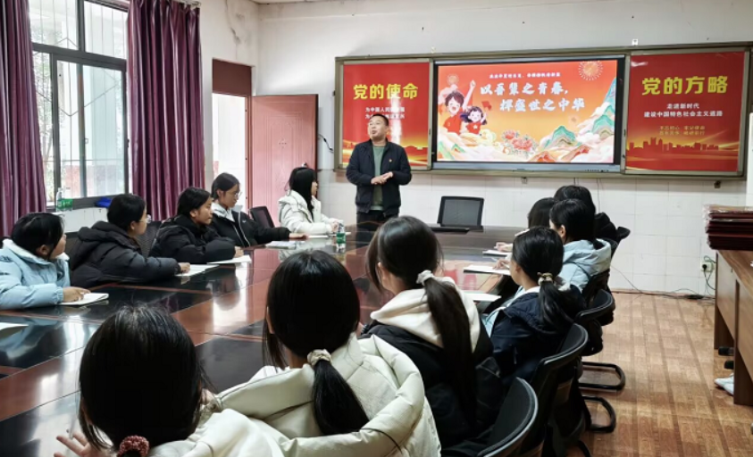 11月26日,活動(dòng)在該校黨團(tuán)隊(duì)活動(dòng)室正式啟動(dòng)。該校副校長(zhǎng)、黨支部副書記黃大川以《青春心向黨,入團(tuán)積極行》為主題,結(jié)合個(gè)人成長(zhǎng)經(jīng)歷與黨史團(tuán)史,通過生動(dòng)實(shí)例闡釋共青團(tuán)的初心與使命。他從入團(tuán)的意義、團(tuán)員的責(zé)任等方面展開引導(dǎo),幫助同學(xué)們樹立崇高的理想信念。“青年是國(guó)家的未來,團(tuán)員更應(yīng)是青年中的先鋒。”真摯而有力的話語(yǔ),讓同學(xué)們深刻認(rèn)識(shí)到,加入共青團(tuán)不僅是一項(xiàng)榮譽(yù),更是一份堅(jiān)實(shí)責(zé)任。
