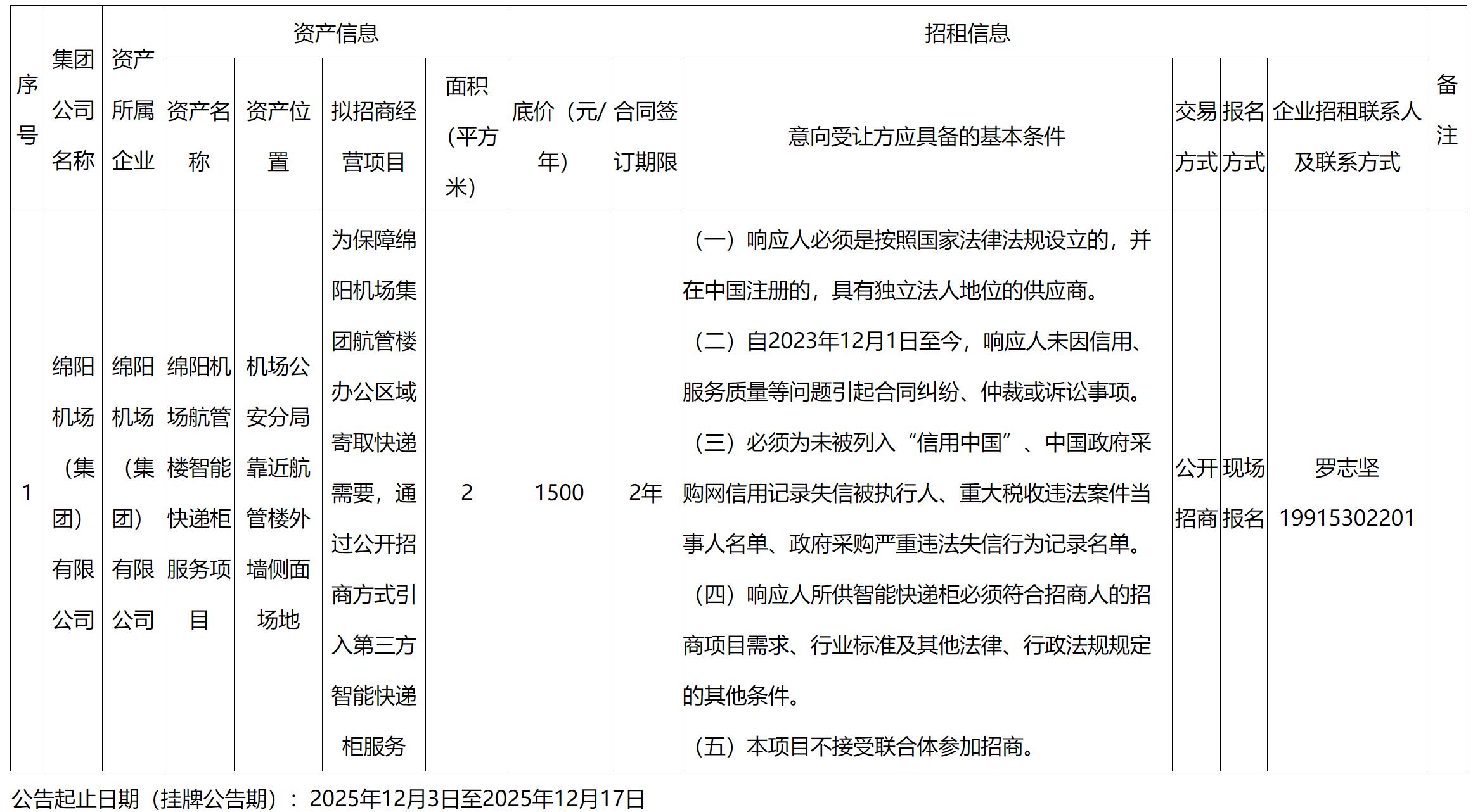 綿陽機場航管樓智能快遞柜服務(wù)項目招商公告