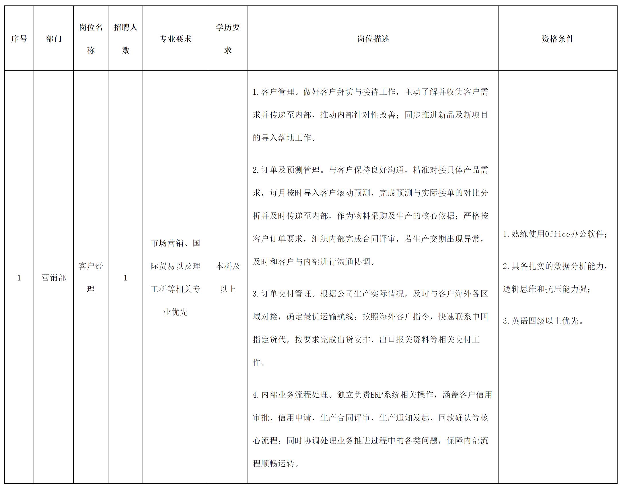 根據(jù)公司經(jīng)營(yíng)發(fā)展需要,現(xiàn)公開招聘客戶經(jīng)理1名: