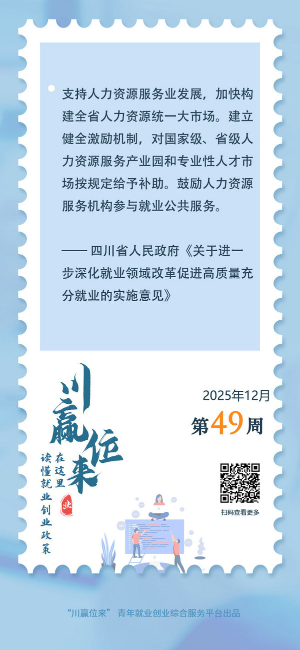 “四川將加快構建全省人力資源統(tǒng)一大市場,鼓勵人力資源服務機構參與就業(yè)公共服務。”四川省人民政府近日印發(fā)的《關于進一步深化就業(yè)領域改革促進高質(zhì)量充分就業(yè)的實施意見》明確提出,要發(fā)揮專業(yè)化人力資源服務促就業(yè)作用,建立健全激勵機制,對國家級、省級人力資源服務產(chǎn)業(yè)園和專業(yè)性人才市場按規(guī)定給予補助。