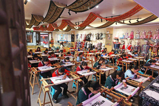 “除了展示銷售苗繡、剪紙等工藝品,我們的蠟染研學體驗項目很受歡迎。游客和中小學生用純天然植物蠟染服飾、抱枕、絲巾等,在親手制作中感受非遺魅力。”景區(qū)“天下九黎”非遺創(chuàng)新創(chuàng)業(yè)工作坊負責人說。