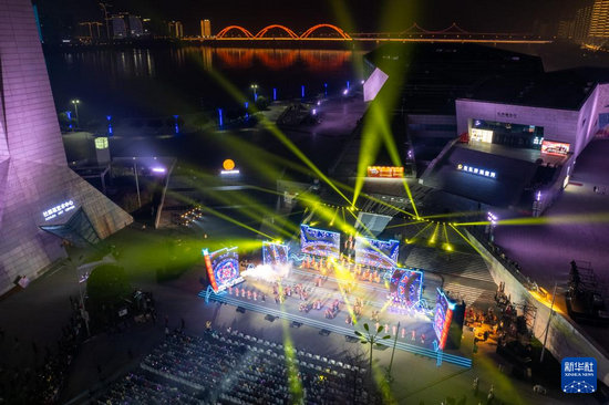 12月9日拍攝的2025年湖南“歡樂瀟湘”優(yōu)秀群眾文藝作品展演活動現(xiàn)場(無人機照片)。
