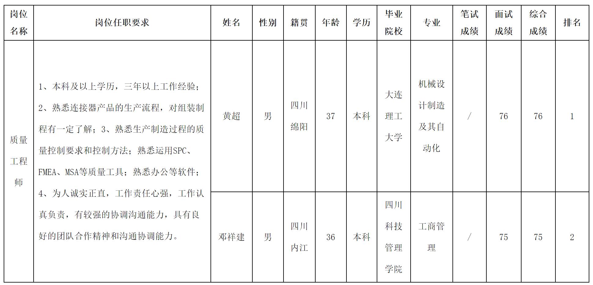 根據(jù)四川華豐科技股份有限公司發(fā)布的招聘公告及招聘相關(guān)規(guī)定,現(xiàn)將測試成績予以公示。