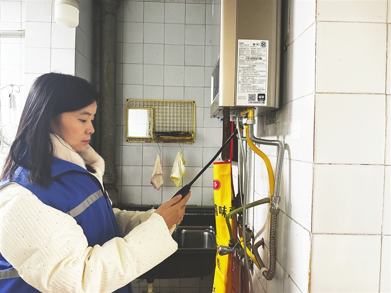 敲門(mén)、說(shuō)明來(lái)意、檢測(cè)、確認(rèn)泄漏點(diǎn),一系列動(dòng)作緊湊熟練。隨后,朱金紅第一時(shí)間聯(lián)系燃?xì)夤緦?zhuān)業(yè)維修人員,沒(méi)多久便排除了安全隱患。范雪松了口氣:“從聞到燃?xì)馕兜诫[患消除,也就個(gè)把鐘頭,響應(yīng)及時(shí)又方便,徹底幫我們解決了安全問(wèn)題。”