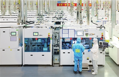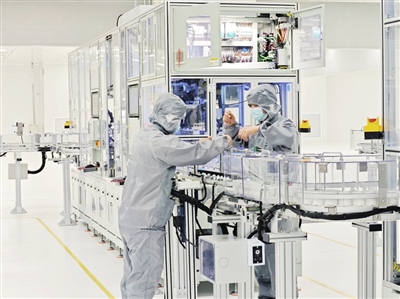 安州高新區(qū)炘皓新能源,太陽能光伏電池片生產(chǎn)車間?!∫曈X綿陽資料圖片